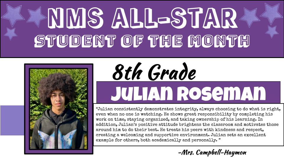 Newton Middle School has announced its October All-Star Team, celebrating students who have gone above and beyond in leadership, character, and dedication.
